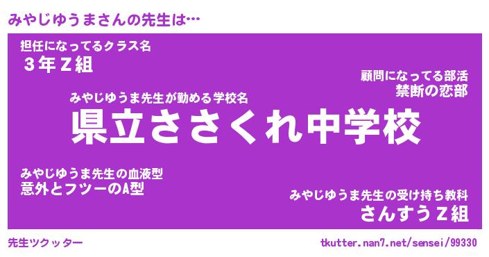 | ヒーロー風カッコイイあだ名 | 『スーパーミヤジユウマ』『黄金騎士ミヤ』 |