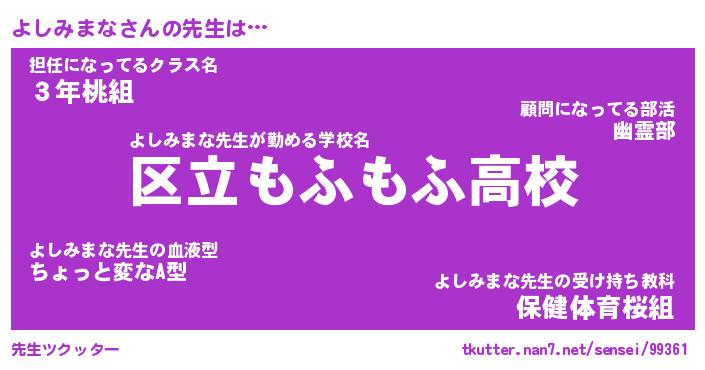 | ファンタジー風あだ名 | 『ヨシフェル』『エターナルヨシミマナー』 |