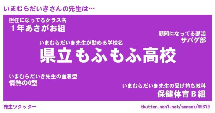 | 胡散臭い通販商品みたいなあだ名 | 『モテモテ間違いなし水晶球…その名も「いまむらだいき」』 |