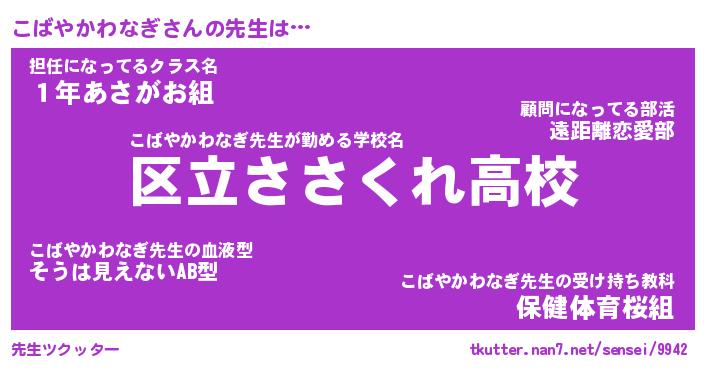 | ヘコむあだ名 | 『こばもー』『牛乳』『こば太郎』 |