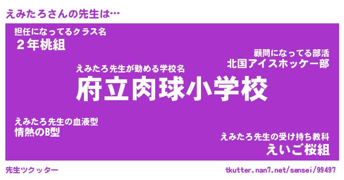 | 意味不明あだ名 | 『ペロリンえみたろ』『永久保存えみたろ』 |