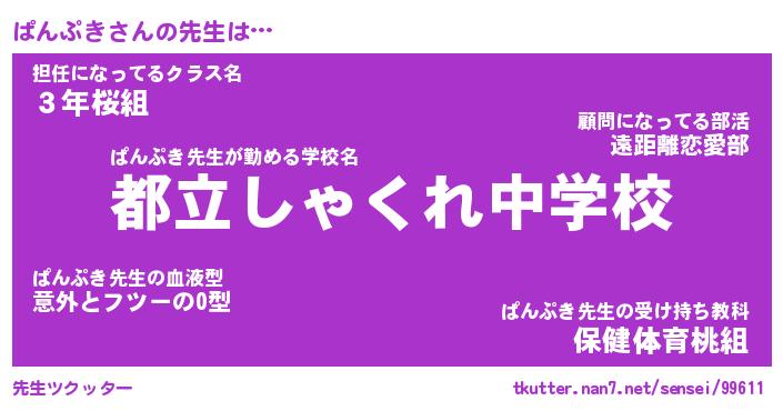 | 意味不明あだ名 | 『ペロリンぱんぷき』『永久保存ぱんぷき』 |