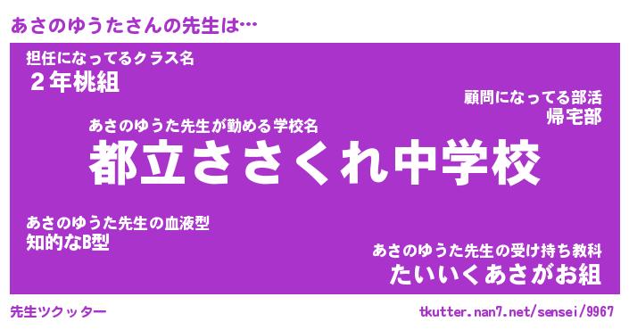 | ヒーロー風カッコイイあだ名 | 『スーパーアサノユウタ』『魔戒騎士アサ』 |