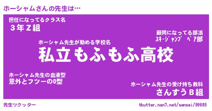 | ファンタジー風あだ名 | 『ホーフェル』『エターナルホーシャムー』 |