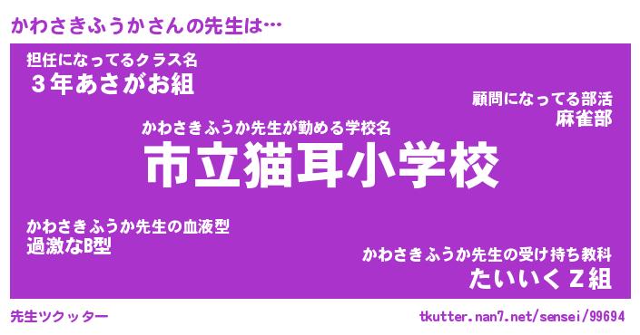 | 男性向けラノベタイトル風あだ名 | 『かわさきふうかの憂鬱』 |
