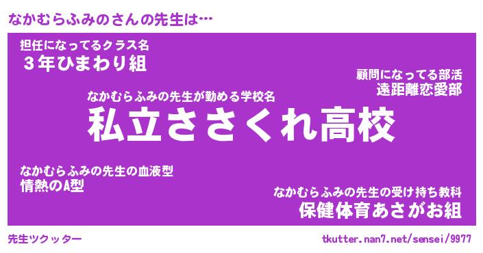 | 伝説のあだ名 | 『伝説のスナイパーなかむらふみの』 |