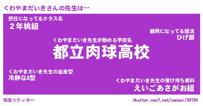 | 胡散臭い通販商品みたいなあだ名 | 『モテモテ間違いなし水晶球…その名も「くわやまだいき」』 |