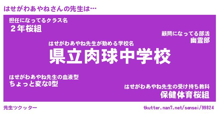 | ポケモン風あだ名 | 『ハセチュウ』『ハセガダネ』 |