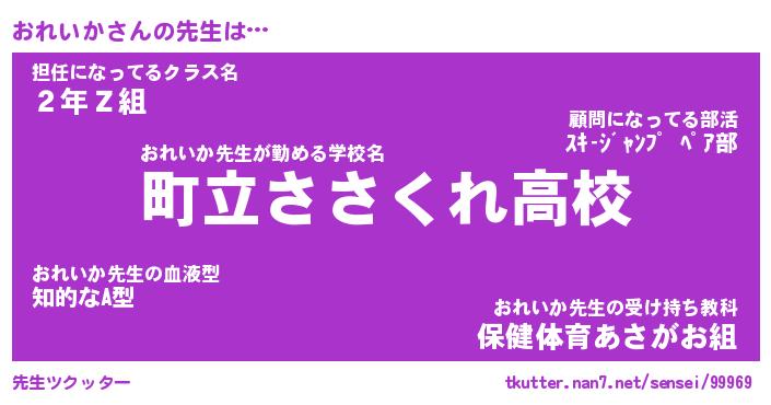 | ヘコむあだ名 | 『おれもー』『なまこ酢』『おれっぺ』 |