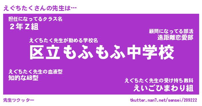 | ファンタジー風あだ名 | 『エグフェル』『エターナルエグチタクー』 |