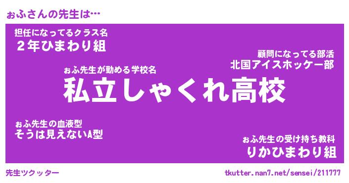 | ファンタジー風あだ名 | 『ォフフェル』『エターナルォフー』 |