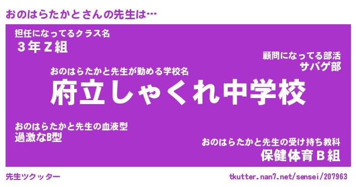 | 伝説のあだ名 | 『封印されしスナイパーおのはらたかと』 |