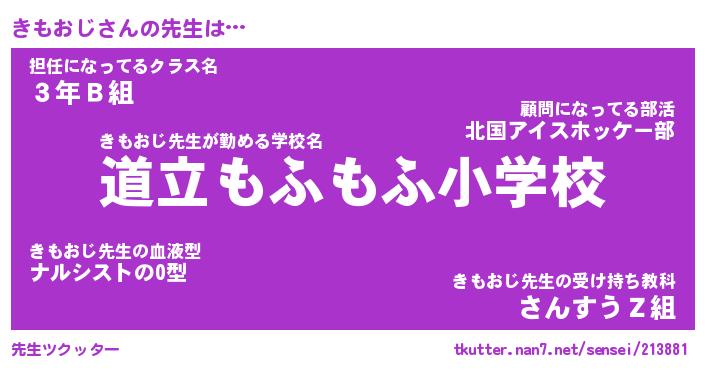| ヒーロー風カッコイイあだ名 | 『スーパーキモオジ』『炎刃騎士キモ』 |