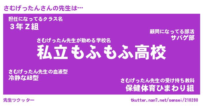 | ヘコむあだ名 | 『さむにゅー』『酢こんぶ』 |