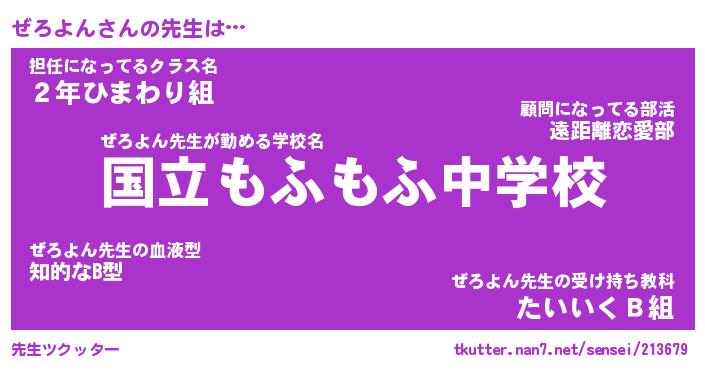 | ヘコむあだ名 | 『ぜろにゅー』『つくし』『ぜろ太郎』 |