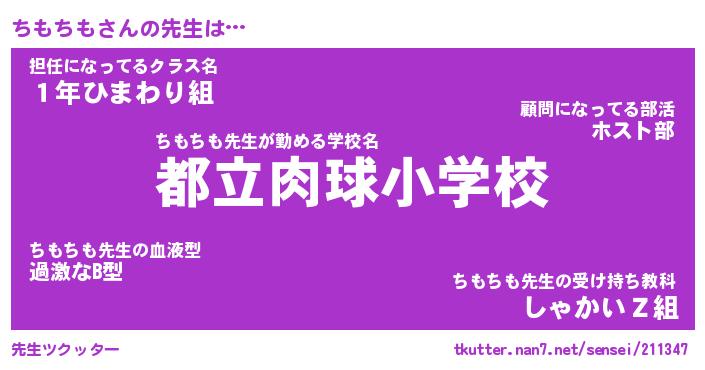 | ヘコむあだ名 | 『ちもふぇ~』『つくし』『ちも太郎』 |