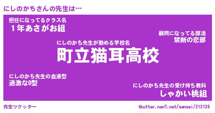 | ヘコむあだ名 | 『にしにー』『牛乳』『にしを』 |