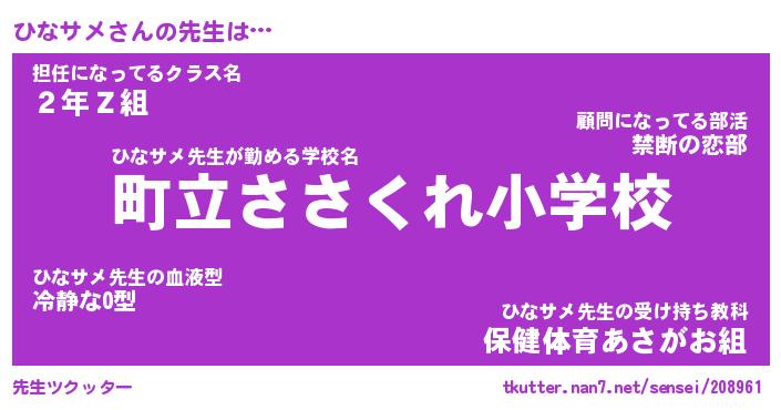 | ファンタジー風あだ名 | 『ヒナフェル』『エターナルヒナサメー』 |