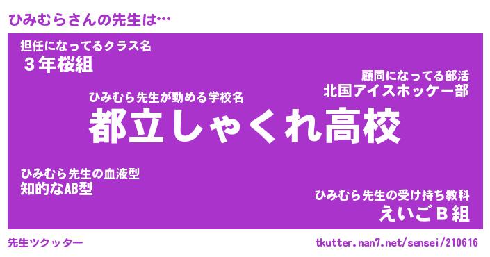 | ファンタジー風あだ名 | 『ヒミフェル』『エターナルヒミムラー』 |
