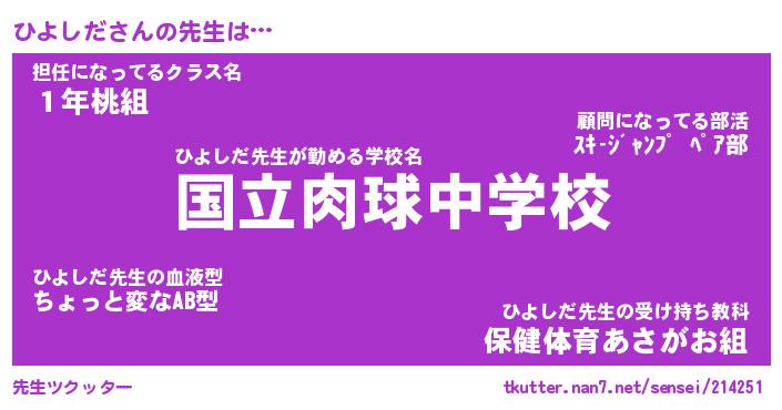 | 意味不明あだ名 | 『ペロリンひよしだ』『永久保存ひよしだ』 |