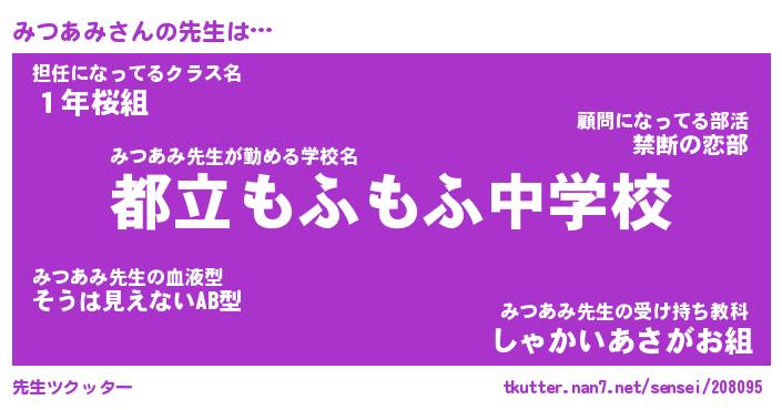 | 意味不明あだ名 | 『ペロリンみつあみ』『永久保存みつあみ』 |