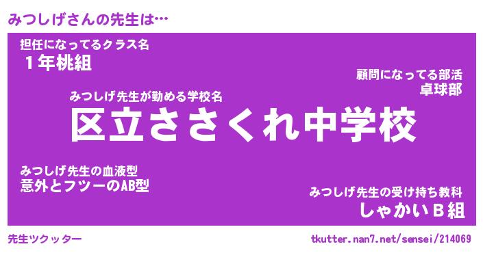 | 意味不明あだ名 | 『ペロリンみつしげ』『永久保存みつしげ』 |