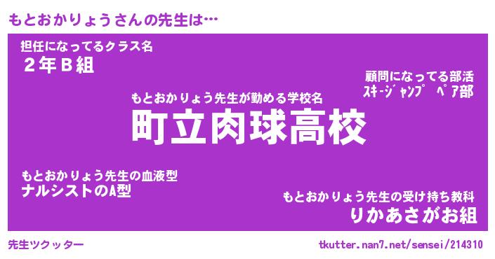 | 胡散臭い通販商品みたいなあだ名 | 『億万長者になれるブレスレット…その名も「もとおかりょう」』 |