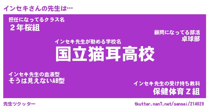 | ヘコむあだ名 | 『インにー』『なまこ酢』『インを』 |