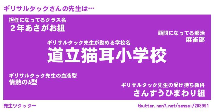 | ツイッター | ギリサルタックさんのツイッターID『dendenmushi_man』 |