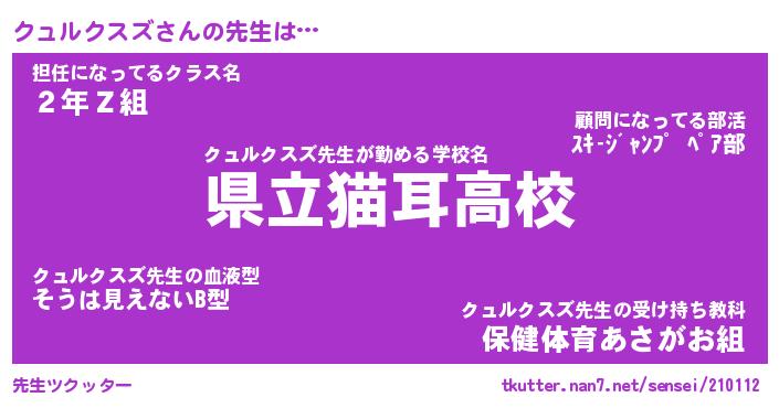 | ヘコむあだ名 | 『クュにー』『豆乳』『クュっ子』 |