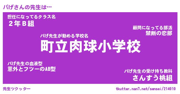 | 意味不明あだ名 | 『ペロリンパげ』『パげフォーエバー』 |