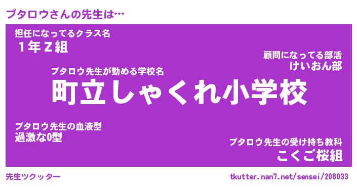 | 意味不明あだ名 | 『ペロリンブタロウ』『永久保存ブタロウ』 |