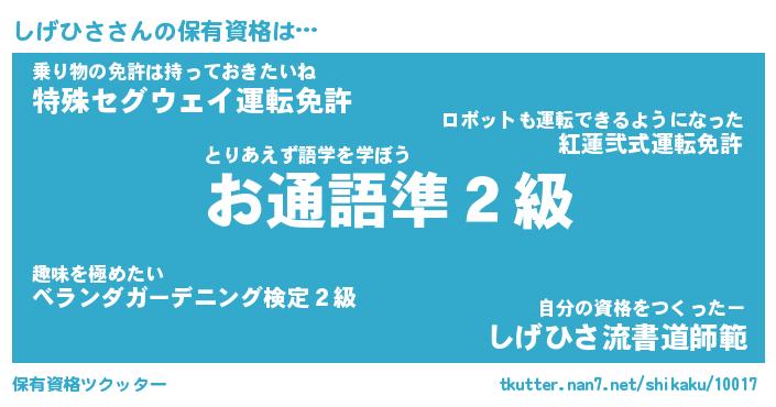 | 意味不明あだ名 | 『ペロリンしげひさ』『永久保存しげひさ』 |