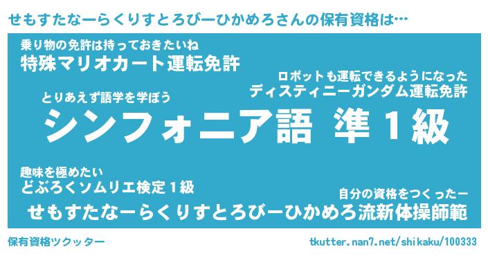 | 男性向けラノベタイトル風あだ名 | 『せもすたなーらくりすとろびーひかめろの憂鬱』 |