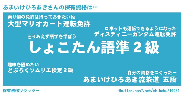 | 伝説のあだ名 | 『封印されしスナイパーあまいけひろあき』 |