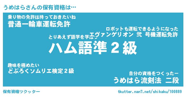 | ヒーロー風カッコイイあだ名 | 『スーパーウメハラ』『魔戒騎士ウメ』 |