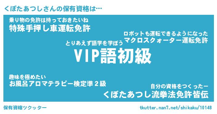 くぼたあつしさんの保有資格は… とりあえず語学を学ぼう『 VIP語初級』乗り物の免許は持っておきたいね『特殊手押し車運転免許』自分の資格をつくったー『くぼたあつし流拳法免許皆伝』 ツクッター #保有資格ツクッター http://tkutter.nan7.net/shikaku/10148/