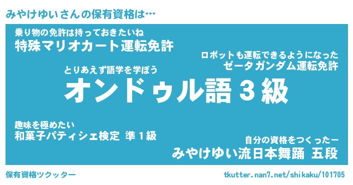 | ファンタジー風あだ名 | 『ミヤフェル』『エターナルミヤケユイー』 |