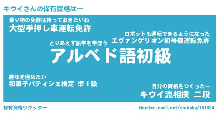 | ファンタジー風あだ名 | 『キウフェル』『エターナルキウイー』 |