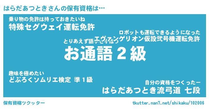 | 男性向けラノベタイトル風あだ名 | 『はらだあつときの憂鬱』 |