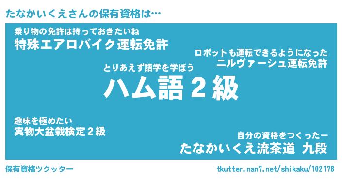 | ヒーロー風カッコイイあだ名 | 『スーパータナカイクエ』『天弓騎士タナ』 |