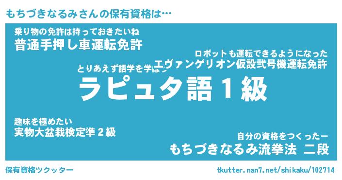 | ツイッター | もちづきなるみさんのツイッターID『katatsumuri_man』 |