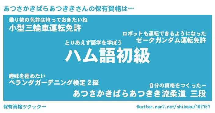 | ツイッター | あつさかきばらあつききさんのツイッターID『katatsumuri_nyan』 |