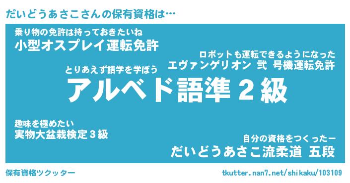 | ツイッター | だいどうあさこさんのツイッターID『dendenmushi_nyan』 |