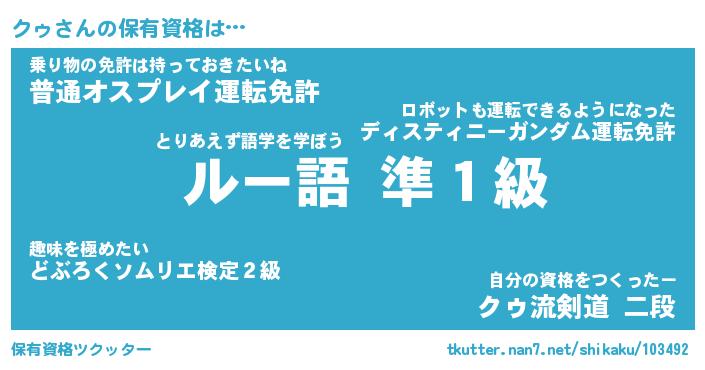 | ファンタジー風あだ名 | 『クゥフェル』『エターナルクゥー』 |