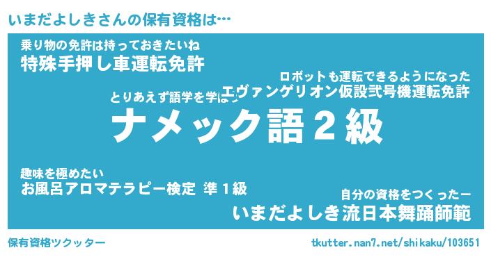 | 男性向けラノベタイトル風あだ名 | 『いまだよしきの憂鬱』 |
