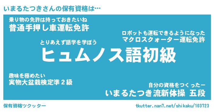 | ヒーロー風カッコイイあだ名 | 『スーパーイマルタツキ』『幻影騎士イマ』 |