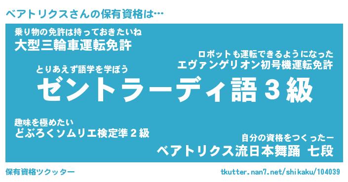 | 肩書あだ名 | 『ベアトリクス店長』『ベアトリクス塾長』 |