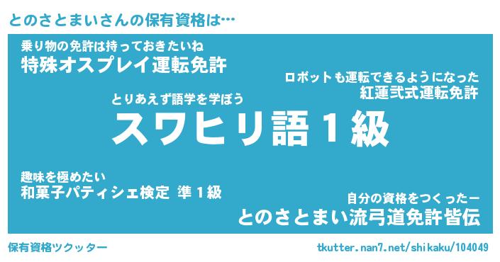| ヒーロー風カッコイイあだ名 | 『スーパートノサトマイ』『魔戒騎士トノ』 |