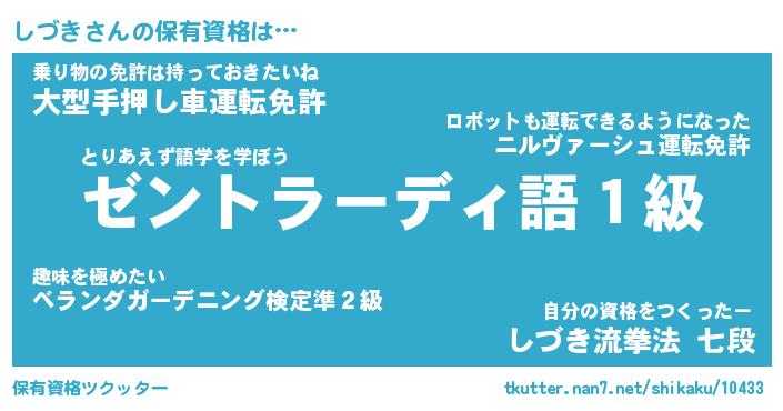 | ファンタジー風あだ名 | 『シヅフェル』『エターナルシヅキー』 |